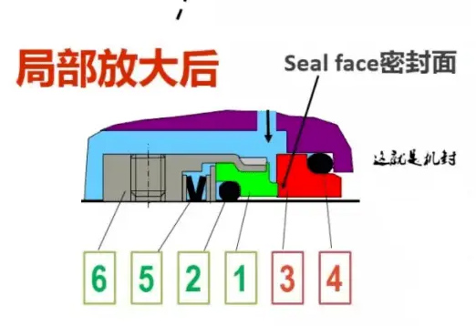 动环与静环之间的密封:是靠弹性元件(弹簧、波纹管等)和密封液体压力在相对运动的动环和静环的接触面(端面)上产生一适当的压紧力(比压)使两个光洁、平直的端面紧密贴合;端面间维持一层极薄的液体膜而达到密封的作用。这层膜具有液体动压力与静压力,它起着平衡压力和润滑端面的作用。两端面之所以必须高度光洁平直是为了给端面创造完美贴合和使比压平均的前提,这是相对旋转密封。